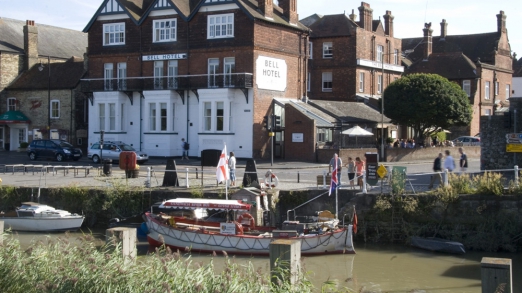 The Bell Hotel has been an important centre of Sandwich life since Tudor times. A Bell Inn has existed on The Quay, adjacent to the Barbican Gate and Toll, overlooking what would have been the harbour, now the River Stour, since about 1300. The present listed building is mainly 19th century. A choice of 34 bedrooms consisting of single, twin, double rooms and suites are available. Some bedrooms have balconies and river views with others overlooking the rooftops of Sandwich all with en-suite bathrooms, spa therapy toiletries, hair dryers, coffee and tea making facilities, radios and remote controlled televisions and telephones. WI FI access throughout the hotel. ''The Place at the Bell'' is the name of our new brasserie and bar. Clean lines, honey coloured oak flooring, a mix of brasserie style seating and contemporary dining chairs, and the use of Farrow and Ball paints in shades of white, has created an environment for relaxed and informal dining.