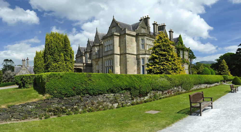 Situated close to the shores of Muckross Lake, amidst the beautiul scenery of Killarney National Park. Muckross House was built for Henry Arthur Herbert and his wife. William Burn, the well-known Scottish architect, was the designer. Building commenced in 1839 and was completed in 1843. Today the principal rooms are furnished in period style and portray the elegant lifestyle of the 19th century landowning class. While in the basement, one can imagine the busy bustle of the servants as they went about their daily chores. The Gardens are spectacularly adorned with the red and pink flowers of mature Rhododendrons. Other garden features include a Sunken Garden, a Rock Garden and a Stream Garden. An Arboretum, containing many trees from the Southern Hemisphere, was established here in 1972.
